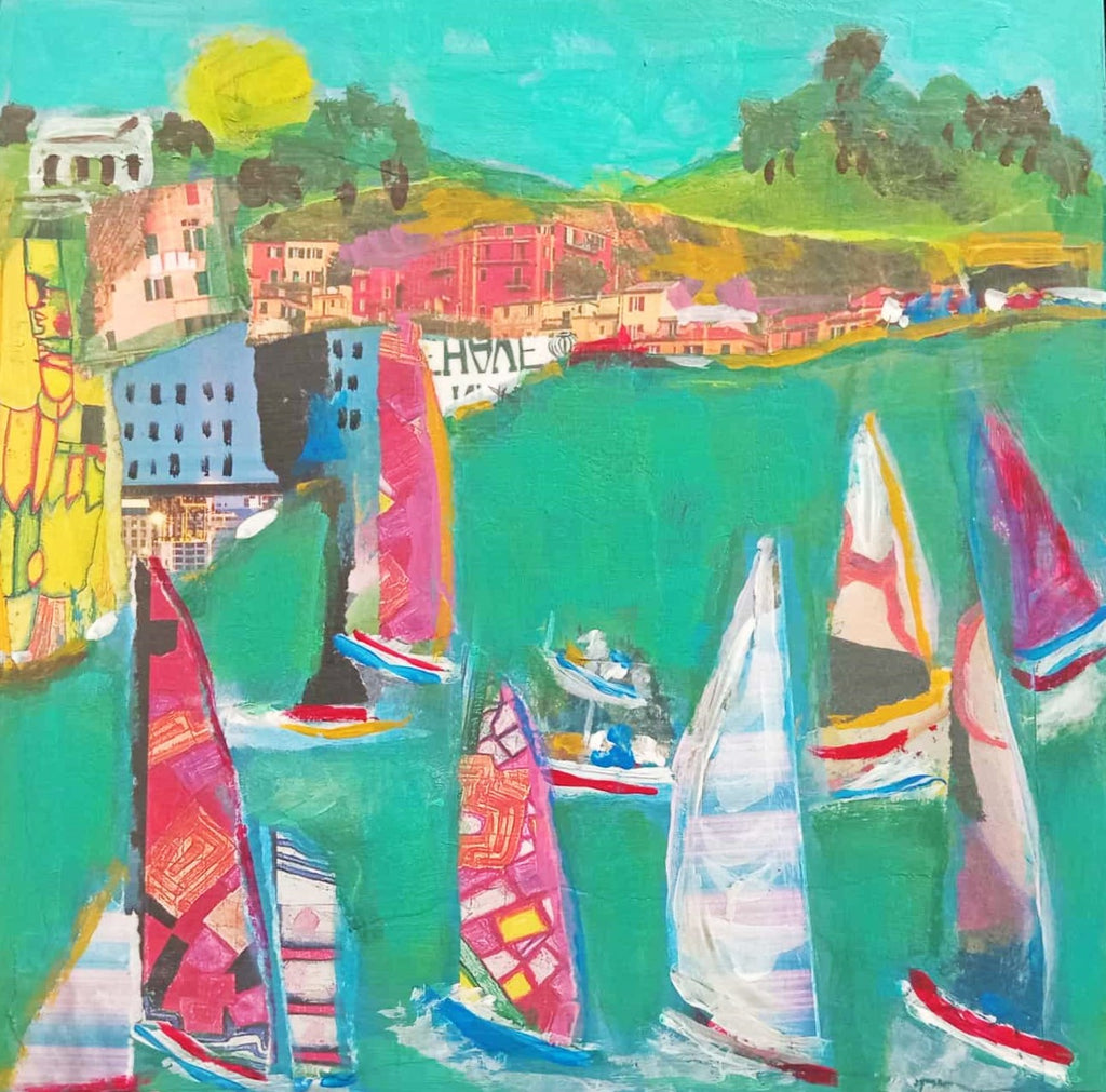 Cathy Preston-Queenstown. Mixed media on a wood panel measuring 200mm x 200mm $250 00