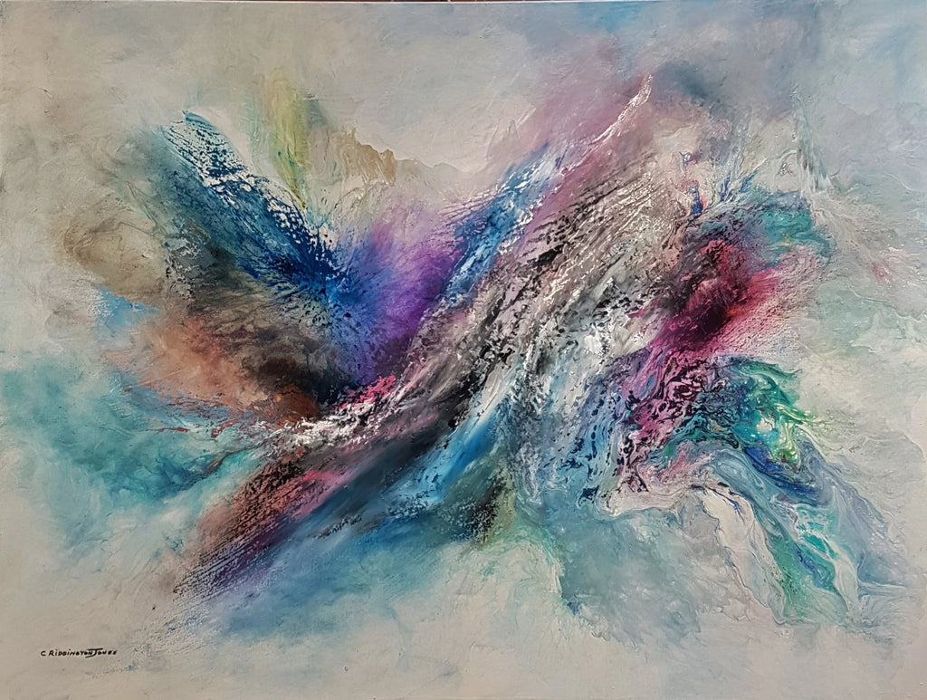 This particular piece of Art was painted after two weeks of self isolation and I let my feelings flow onto the canvas. I was thinking of beautiful places I would rather be and feeling frustrated and somewhat nervous about the future. I tried to put some lovely colours into it to show the beauty which is still all around us but the main abstract feel was of tumultuous times which I fell would pass and leave us better people. It is a dynamic piece reminiscent of the beautiful mountains, which would make a lovely statement on any wall.