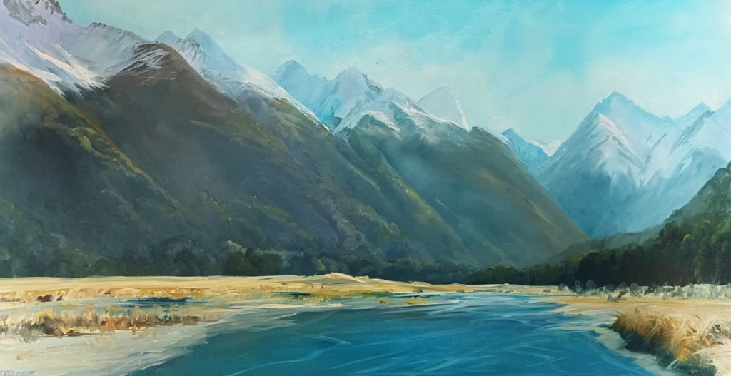 Deborah Lambert-Eglinton Valley, Knotts Flat.Oil on the unstretched canvas measuring 350mm x 940mm $2500.00