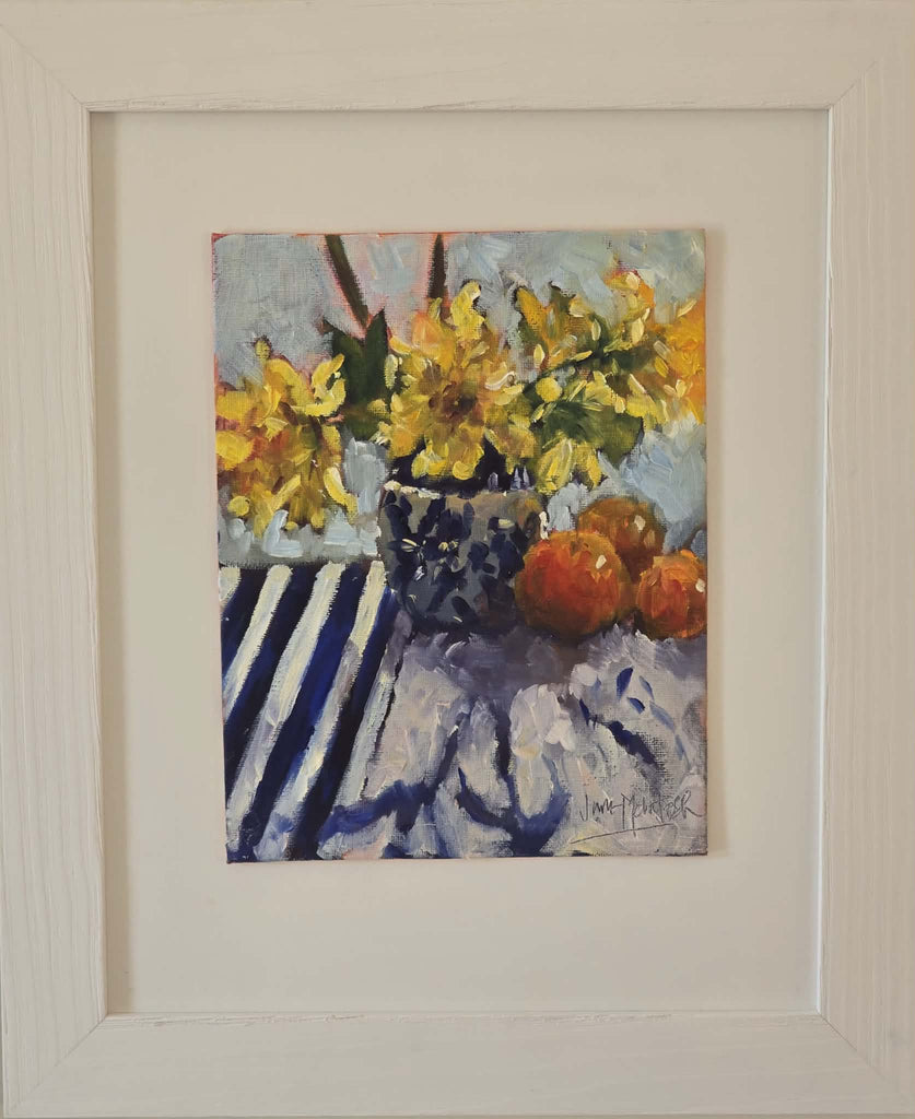 Jane McIntosh-'A Century of Spring' oil on board,framed white,$650-00