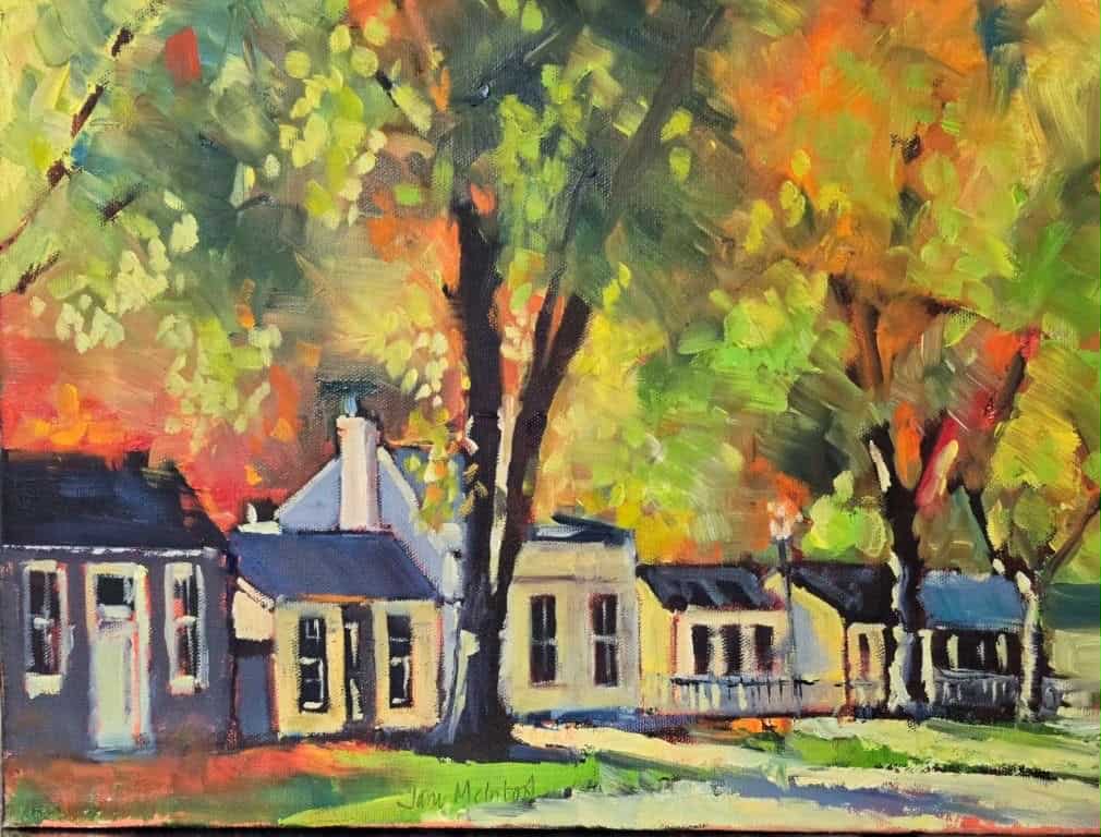 Jane McIntosh-Arrowtown Cottages - oil on canvas, unframed 400x300mm $550.00