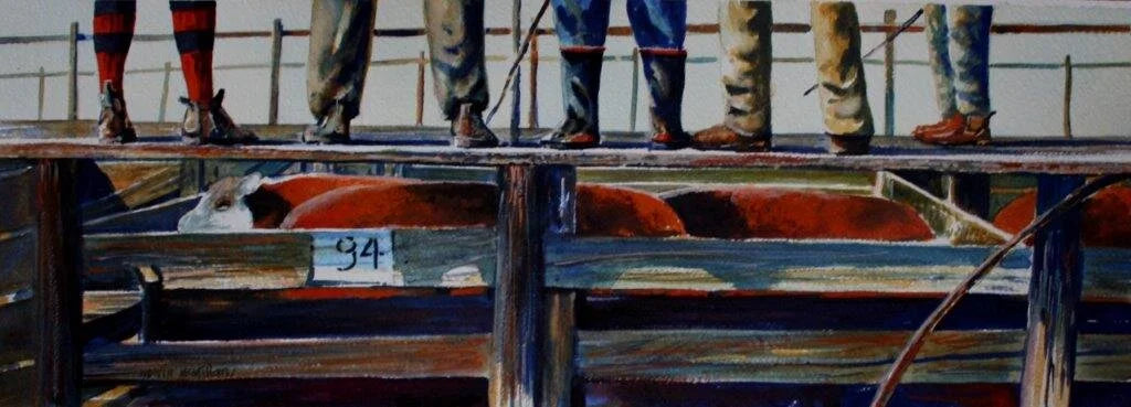 Kelvin McMillan-Bull Sale, Canterbury. Watercolour, 760x280mm.
