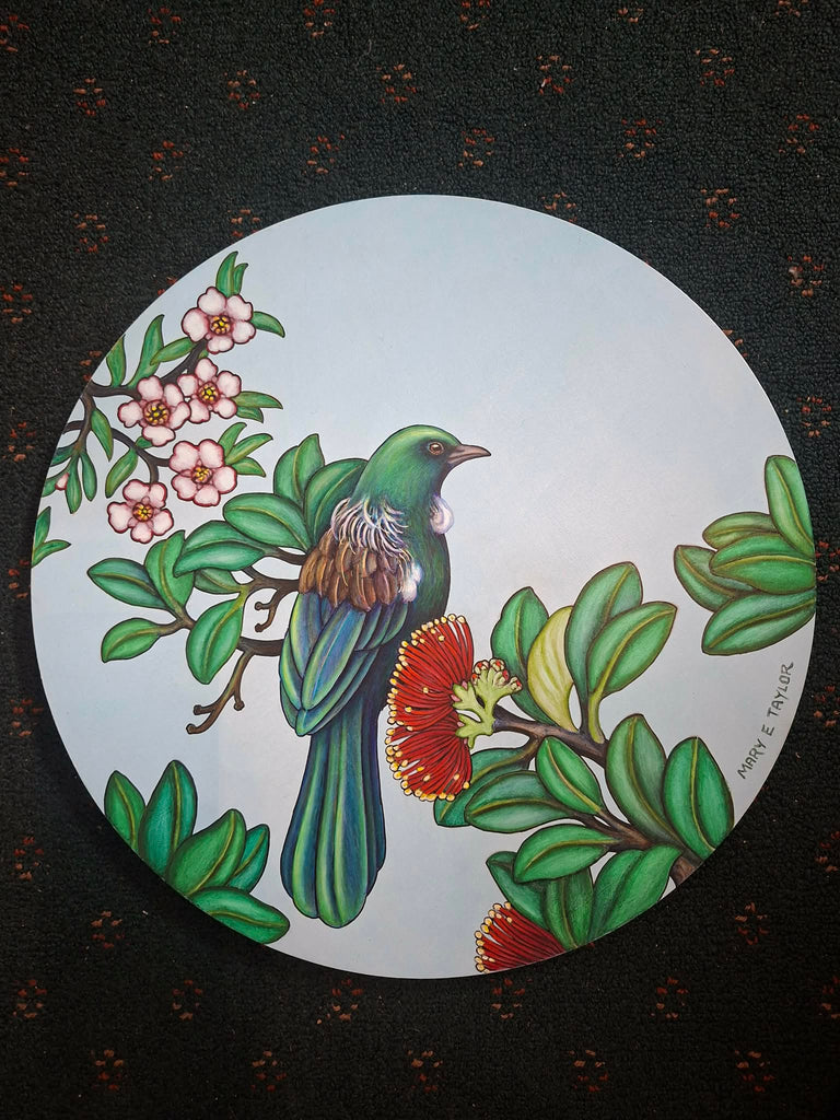 Mary Taylor-Tui Acrylic on wood panel and rounds of 400mm diameter. $2200.00