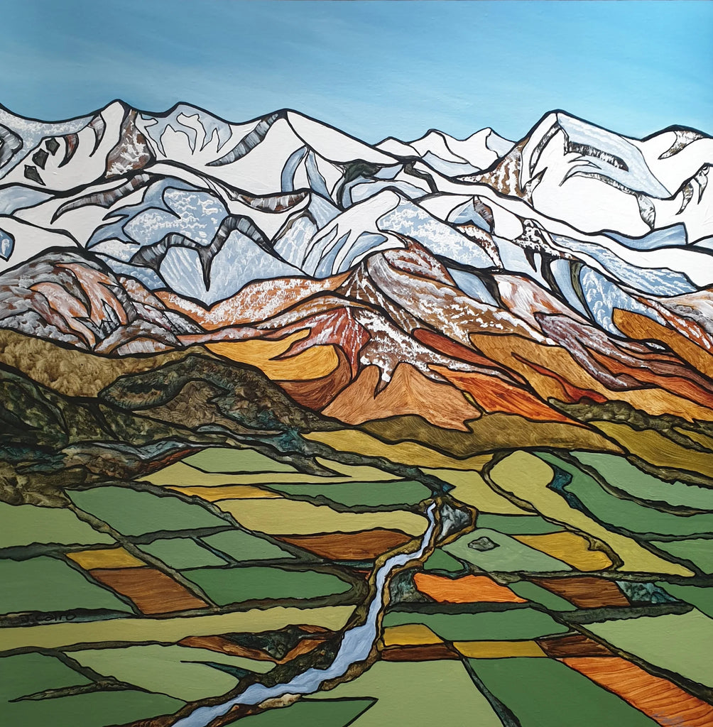 Acrylic on canvas. Ready to hang with a hanging cord attached. Varnished with clear artist's varnish so you can gently clean with a soft moist cloth. $1900.00.