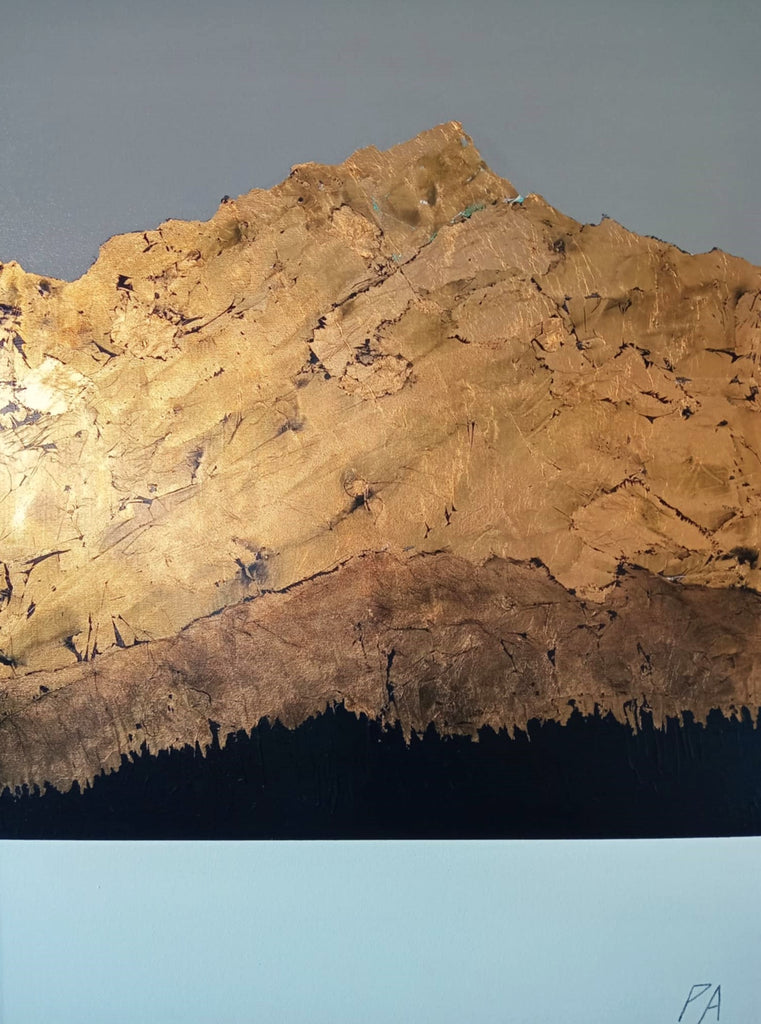 Pierre Aubert- Golden Reflections. Acrylic and Gold Leaf on the wrap around canvas ready to hang measuring 760 x1010mm $6500-00