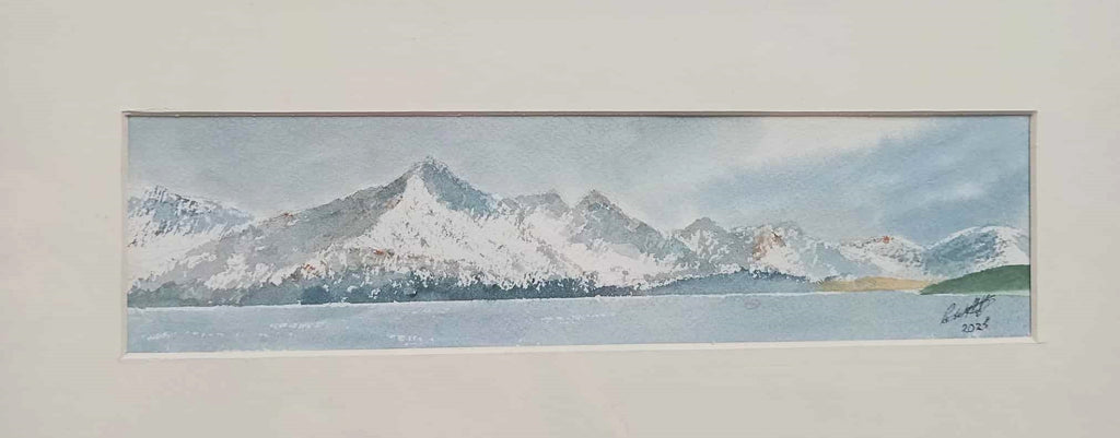 Rex Mills-Walter Peak,Lake Wakatipu . Watercolour matted size 170mm x 380mm $150.00