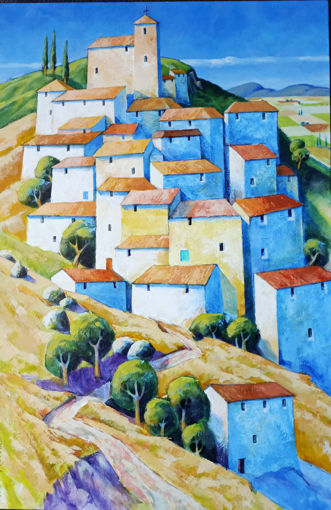 Acrylic on the wrap around canvas ready to be hung measuring 610 x 910mm $4500.00