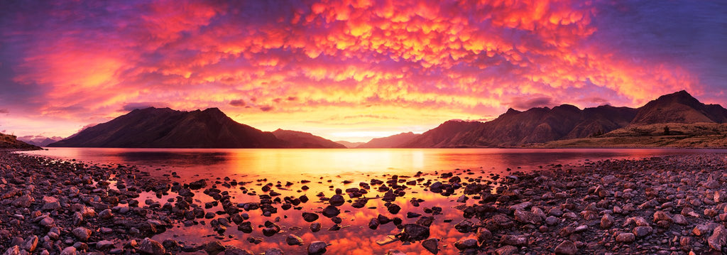 This 180 degree view captures Glenorchy on the left, the popular Glenorchy road to the right. Queenstown sits just left of centre with the Remarkables to the right, followed by Walter Peak & Mt. Nicholas.”
